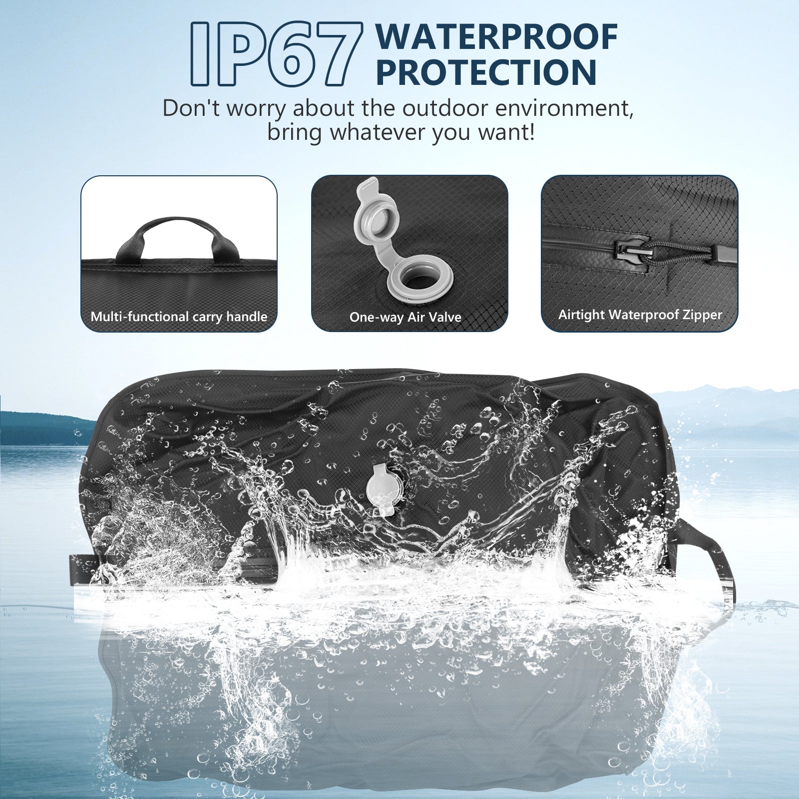 - 【IP67 Airtight Zipper】Featuring a 1000+ reuse IP67 waterproof zipper (similar to diving suits), this vacuum compression bag blocks air, liquids, and odors. Pro Tip: Fully close the zipper to the end for a flawless seal, ensuring clothes stay dry and clean during transit.